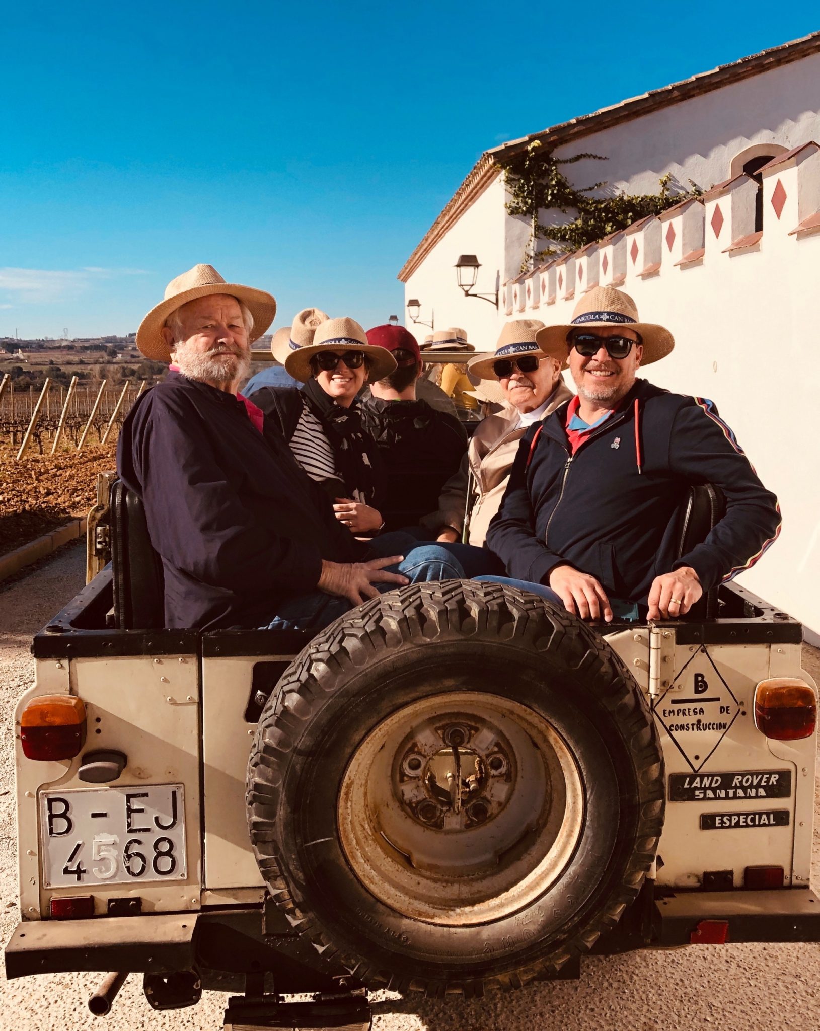 Out of the city we pulled into a lovely vineyard and slowly climbed aboard (remember Lou and the walking stick?) the open 4×4 for a leisurely drive through the grounds, stopping at an 11th century chapel. The guys who really have no wine tour experience were blown away. After the ride we toured and sampled four delicious wines paired with tapas. And no skimping like in the states – these were big pours. My dad was enamored with both our guide and the vineyard owner. I’m sure you’ll hear ALL about them from Denny. I already have. 🙄Second stop was the Cava caves where they stored 3 million bottles. Stunning. Then four more Cavas and tapas. Again, full glasses. So…8 drinks in we piled blissfully into the van back to the city.